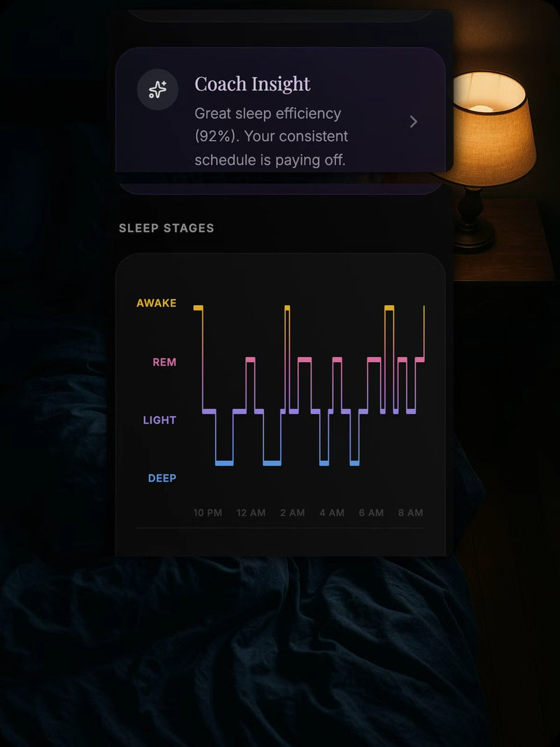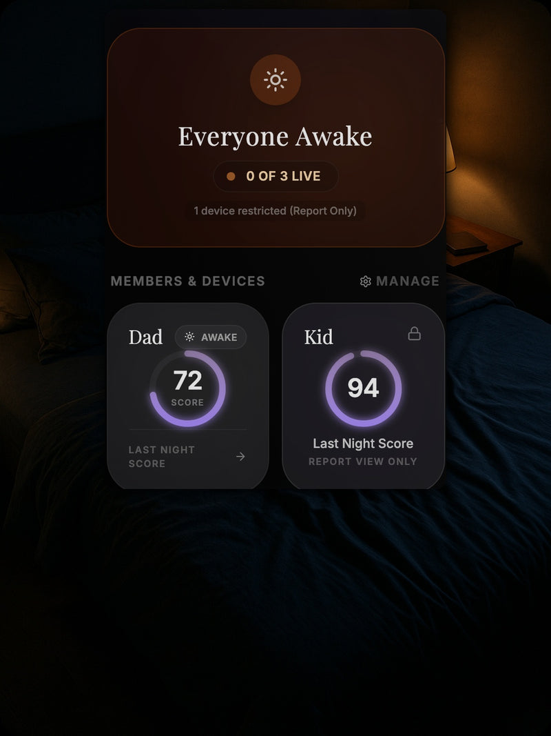 Tracks sleep through the mattress. No wearables, no charging, nothing to remember.