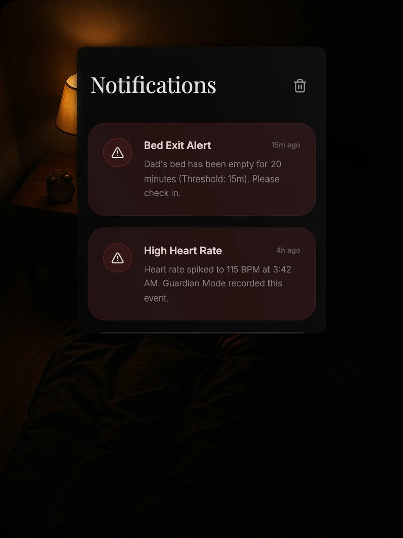 OZI can gently alert you to meaningful events like prolonged wake-ups or bed exits.