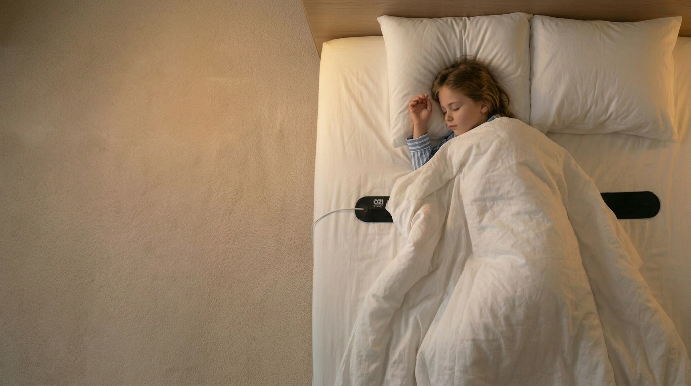 That's why we built OZI, a contactless, non-wearable sleep tracker that lives under the sheet, completely out of sight, giving you clarity without disturbing the person you love.