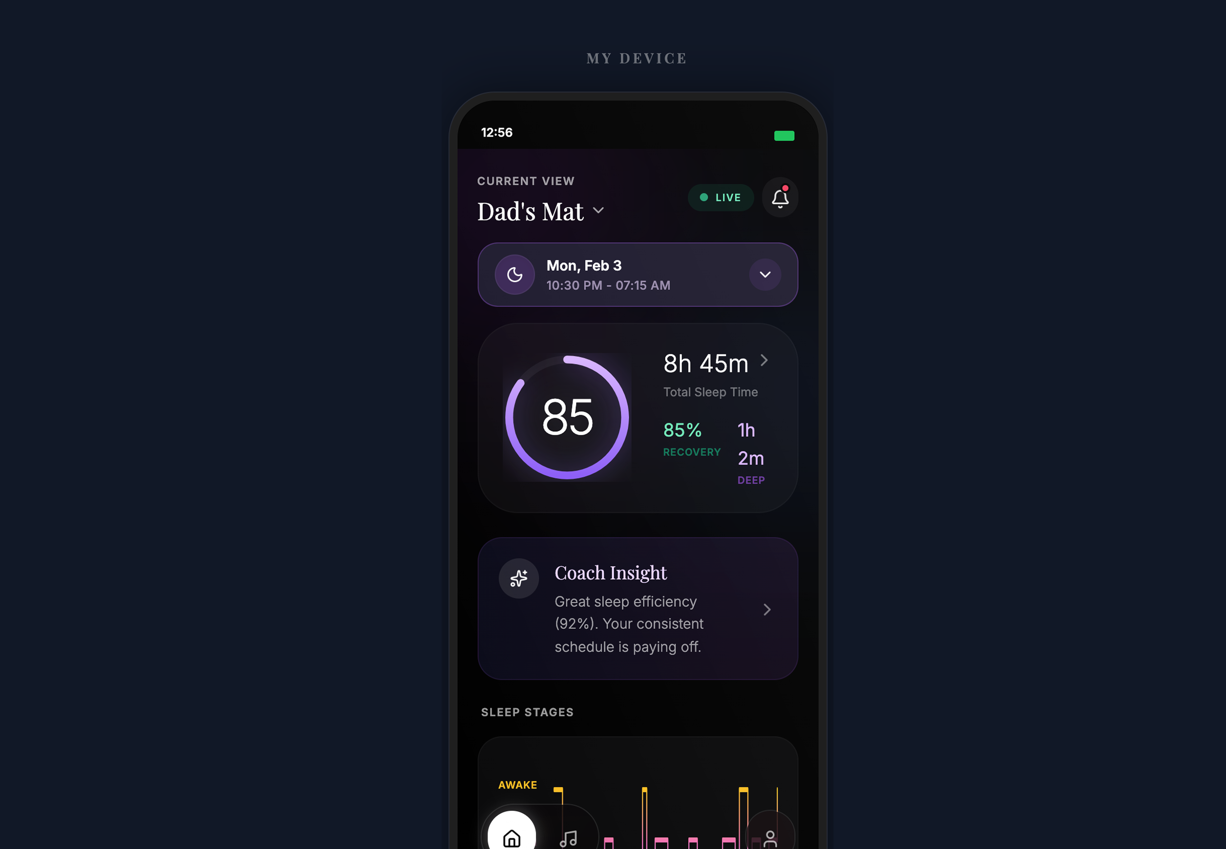 The contact-free sleep tracker that helps you understand your family's rest without wearables or cameras. Includes lifetime app access and adaptive soundscapes.